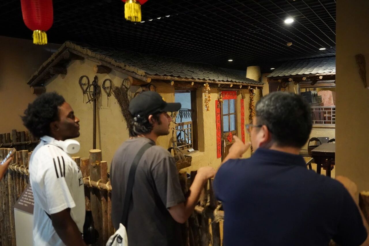 走进长白山民俗博物馆的满族大院,同学们仿佛穿越回了百年前的生活场景:木屋青瓦、火炕土墙,处处流淌着满族人家的烟火气。队员们根据展览介绍为留学生细致讲解满族传统的生活方式与习俗,从日常起居到节庆礼仪,让留学生同学们在实地感受中更加真切地理解少数民族文化的独特魅力。