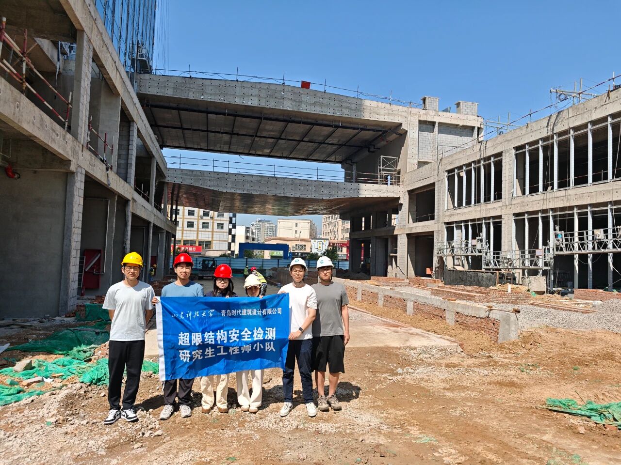 超限结构安全检测”工程师小队于8月16日赴青岛时代建筑设计有限公司承建的长江会议中心项目工地现场,实地考察项目的主体结构、关键节点及施工工艺,考察结束后,小队成员与青岛时代建筑设计有限公司技术总监王亚磊在项目部会议室举行技术交流会,王亚磊介绍了长江会议中心在施工中的创新技术,并重点分享了公司在超限建筑安全监测领域的实践经验,小队成员则汇报了团队在该项目在仿真模拟等方面的研究成果,并就实际工程中的问题提出建议,现场互动热烈,学术氛围浓厚。