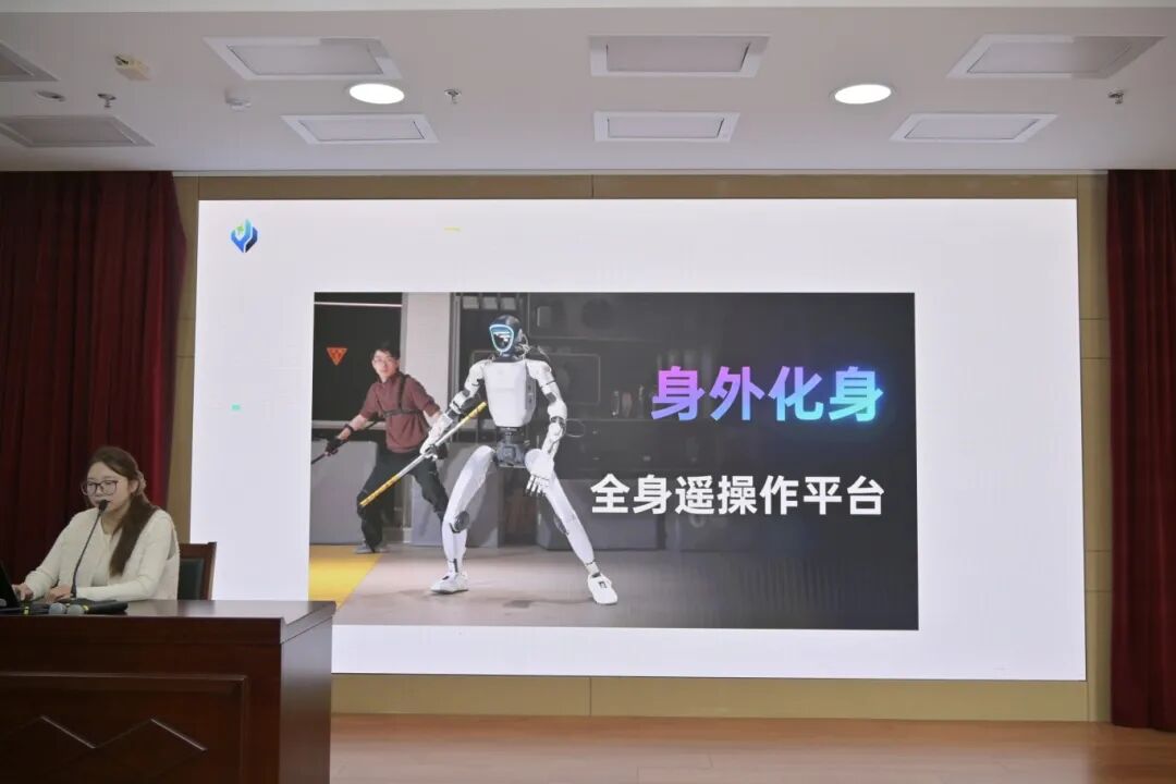 在陈鑫老师的分享环节,陈老师通过实景互动来揭示技术魅力。在现场师生的注目下,人形机器人灵活自如地执行跑步、舞蹈、挥手等指令,动作流畅自然。这背后,正是借助复杂数学模型的实时计算与指令求解,将抽象算法转化为具体行动的过程。随后特别邀请老师与机器人进行互动握手,直观地展现了数学建模如何作为“大脑”指挥着机器人的“身体”,使深奥的理论在趣味互动中变得易懂可感。