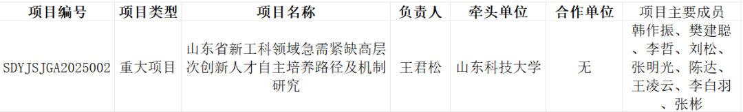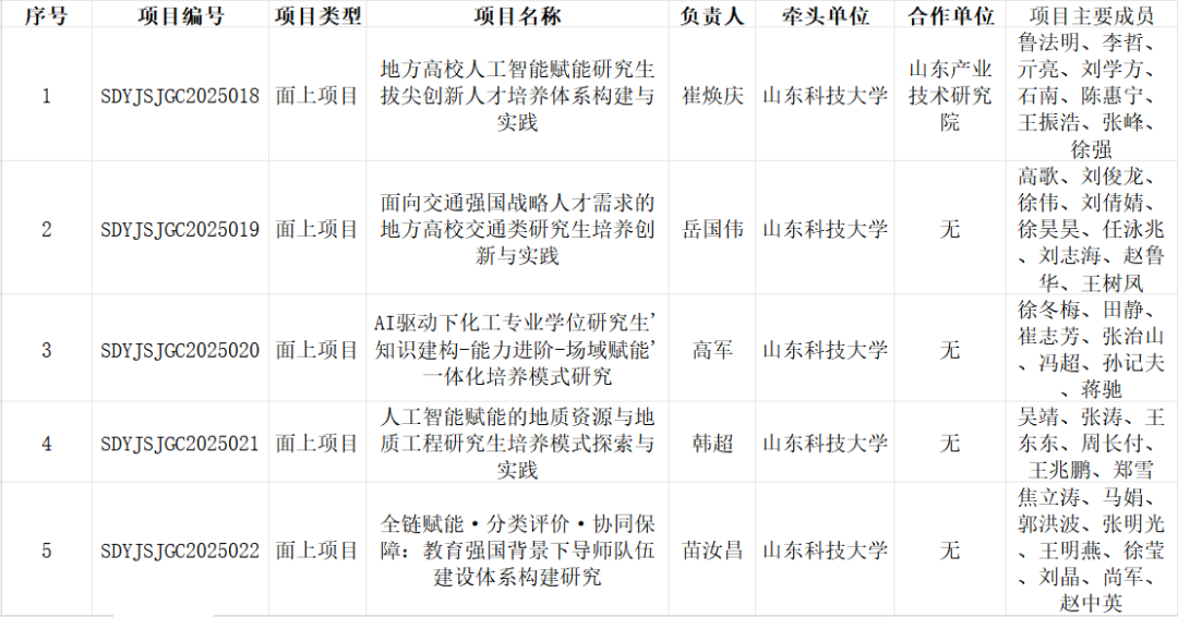 近日,2025年山东省研究生教育教学改革研究项目和研究生优质教育教学资源项目立项名单公布,我校获批山东省研究生教育教学改革研究项目8项,其中重大项目、重点项目和重点项目(专项)各1项,面上项目5项;获批山东省研究生优质教育教学资源项目25项,其中研究生精品课程2门、优质课程9门,研究生优质专业学位教学案例库11门,研究生联合培养基地2个、卓越工程师教育实践基地1个。获批总数位居省属高校首位。