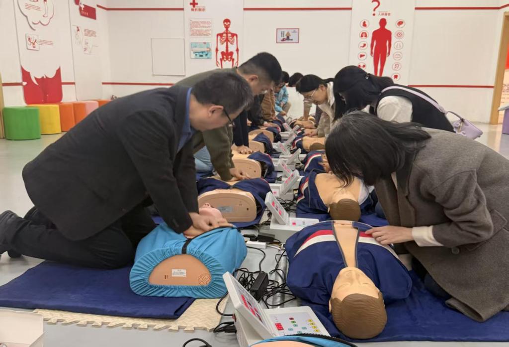 在急救体验区,讲解员围绕心肺复苏和海姆立克急救法这两项“救命技能”展开详细讲解。对于心肺复苏,讲解员现场演示了评估环境与意识、检查呼吸、胸外按压、人工呼吸的完整流程;在海姆立克急救法讲解中,讲解员逐一纠正动作细节,确保每一位参与者都能掌握规范的急救操作,真正学会“救己救人”。