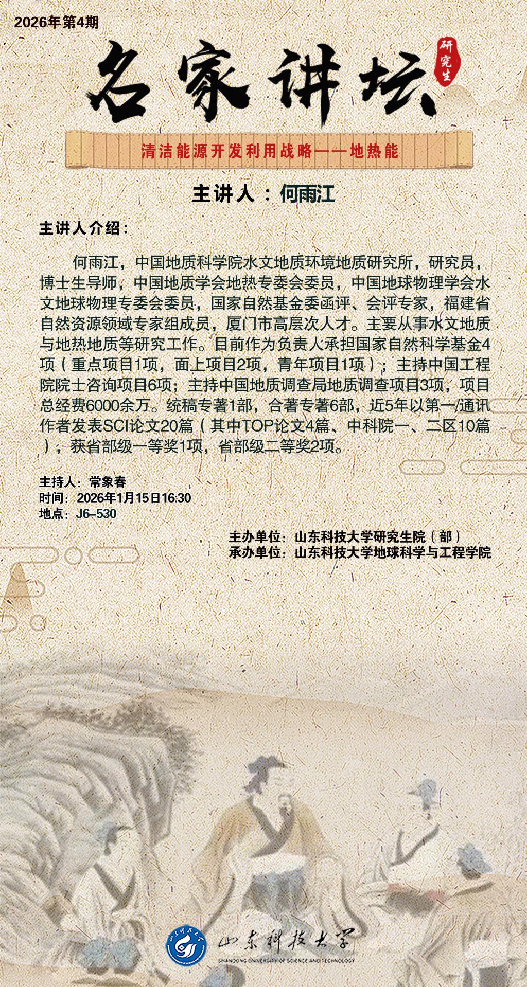 “名家讲坛”2026年第4期:清洁能源开发利用战略——地热能(总1106期)