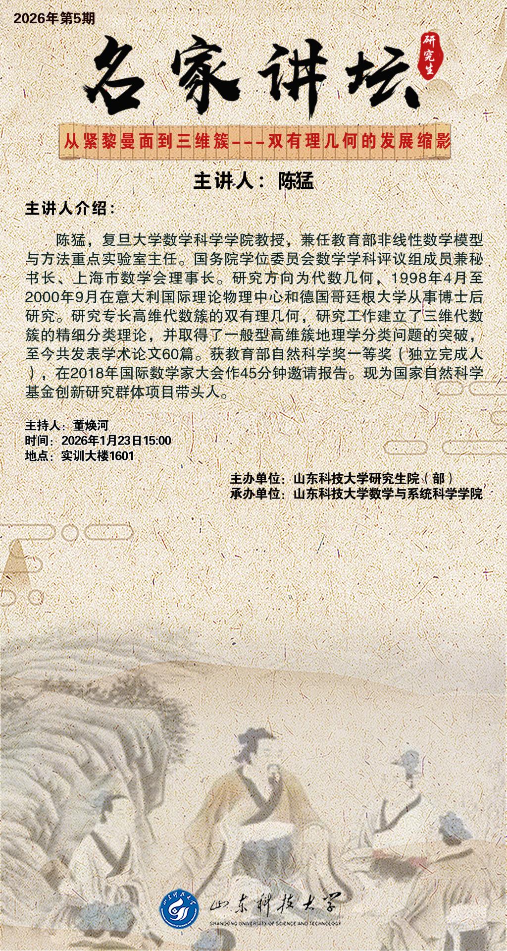 “名家讲坛”2026年第5期:从紧黎曼面到三维簇---双有理几何的发展缩影(总1107期)