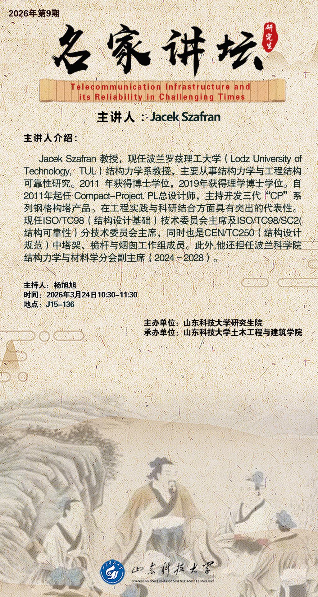 “名家讲坛”2026年第9期:Telecommunication Infrastructure and its Reliability in ChallengingTimes(总1111期)