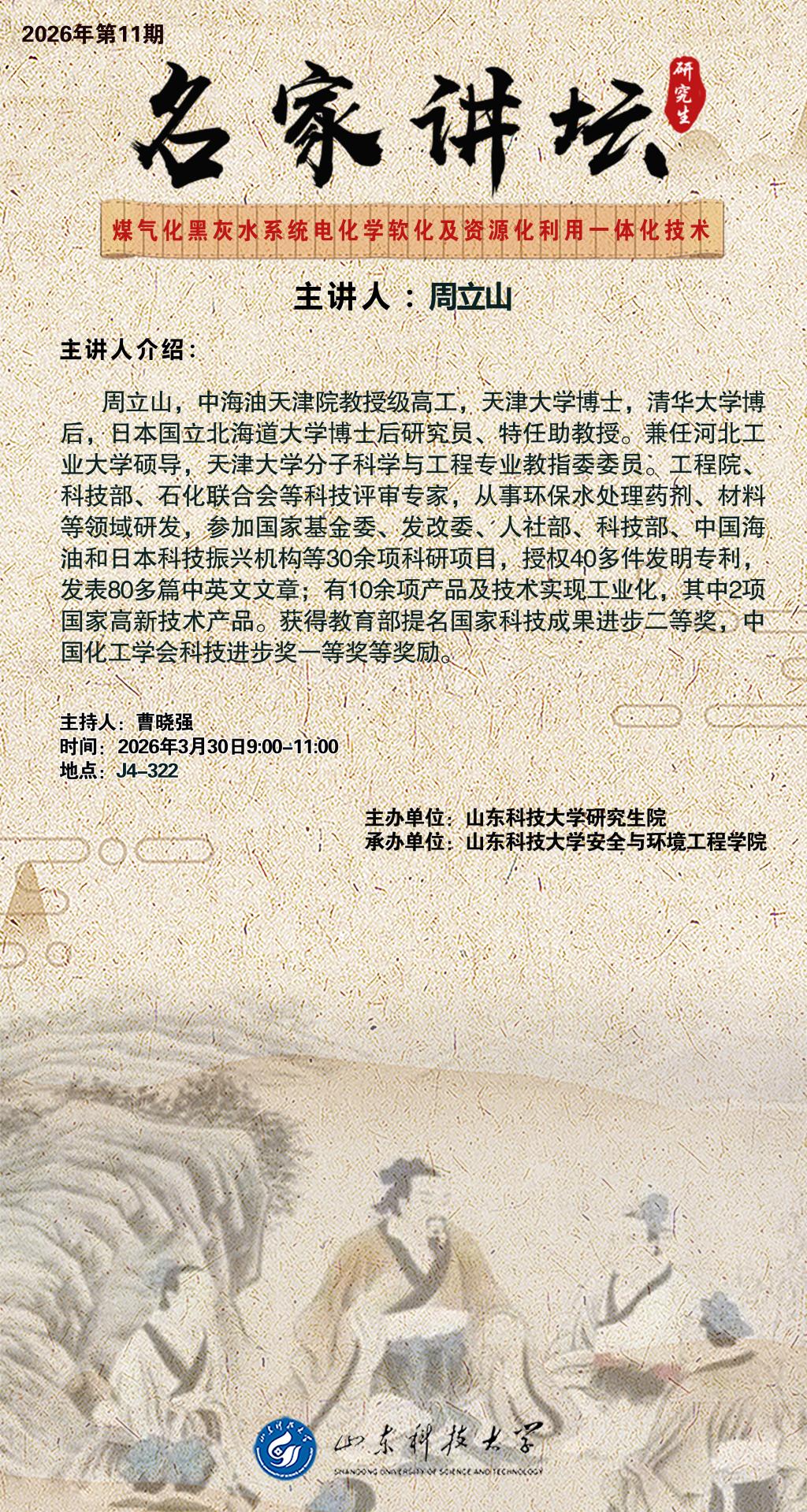 “名家讲坛”2026年第11期:煤气化黑灰水系统电化学软化及资源化利用一体化技术(总1113期)