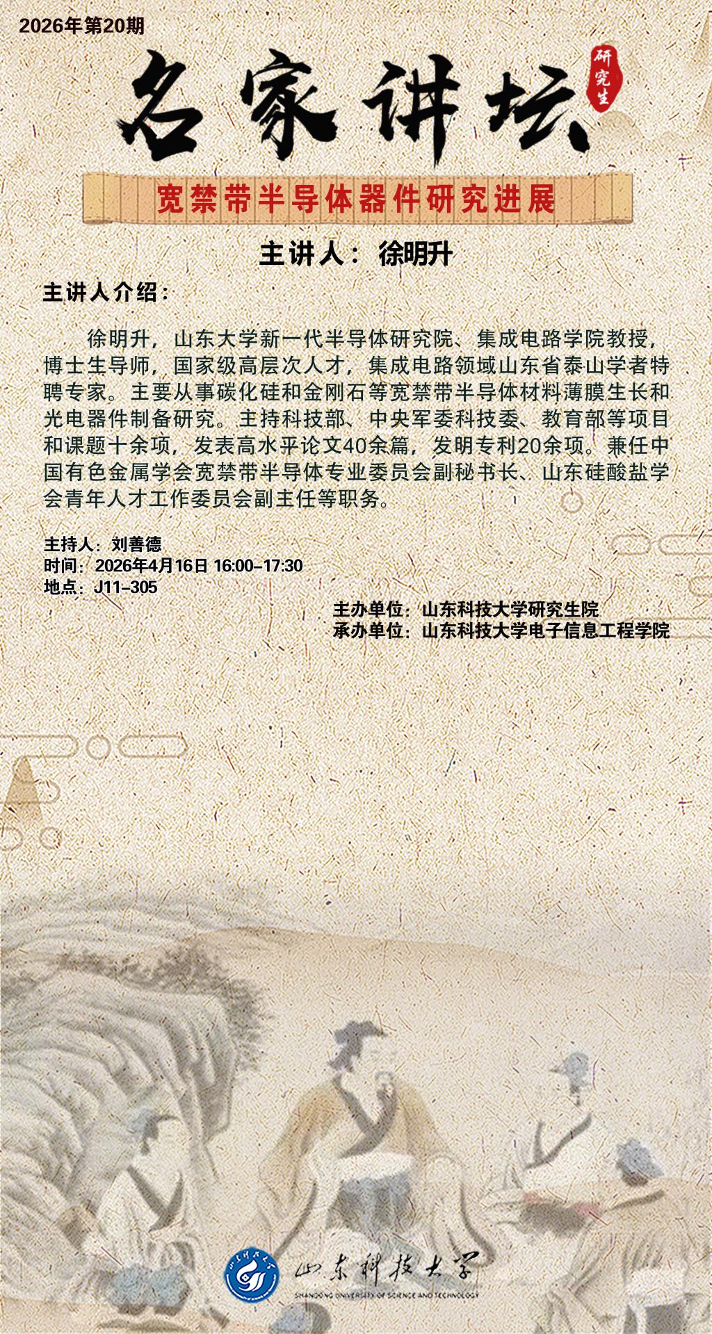 名家讲坛2026年第20期: 宽禁带半导体器件研究进展(总1122期)