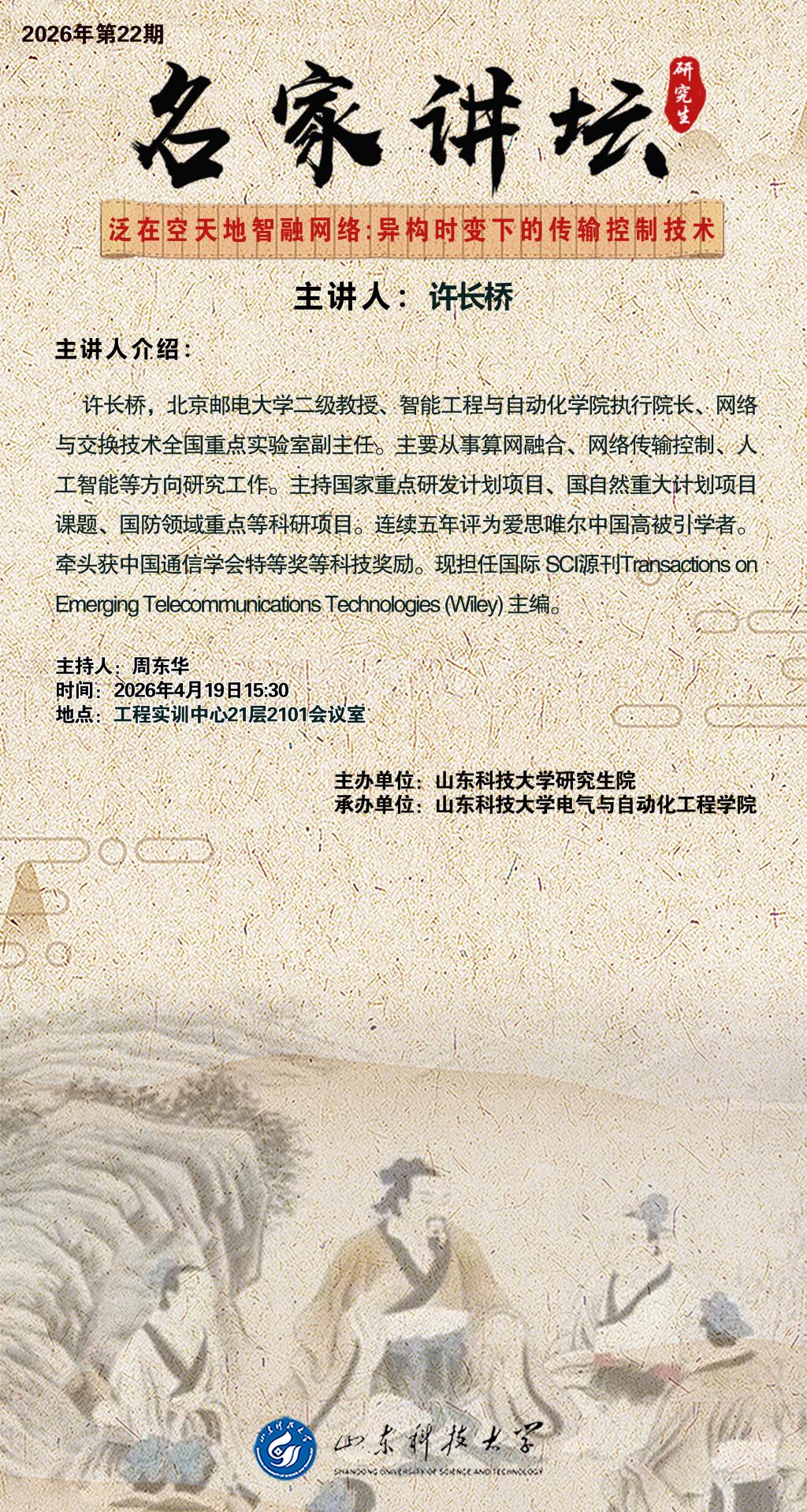 名家讲坛2026年第22期: 泛在空天地智融网络:异构时变下的传输控制技术(总1124期)
